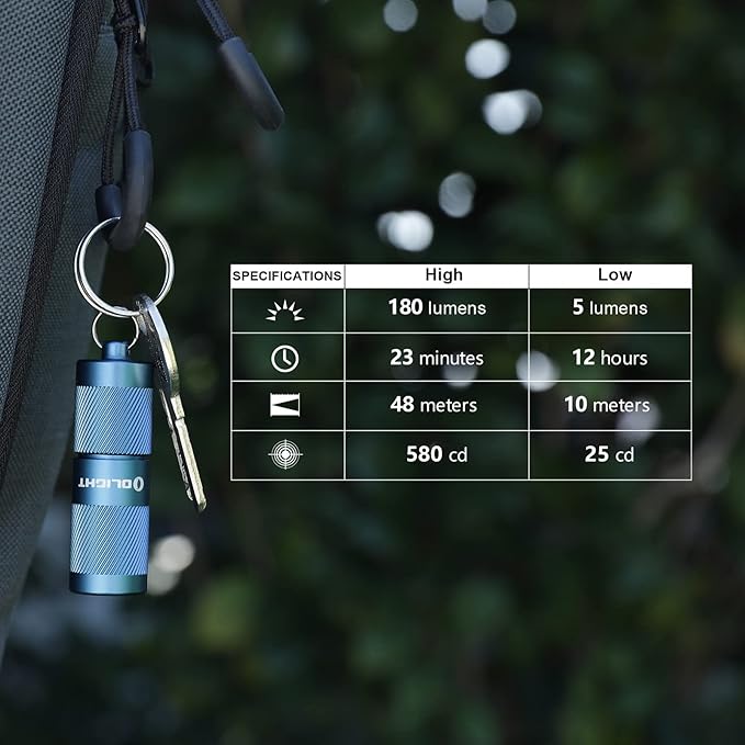 OLIGHT I1R 2 Pro Eos 180 Lumens EDC Rechargeable Keychain Flashlight, Powered by Built-in Rechargeable Battery with Type-C USB Cable, Slim Mini Handheld Light for Everyday Carry(Lake Blue)