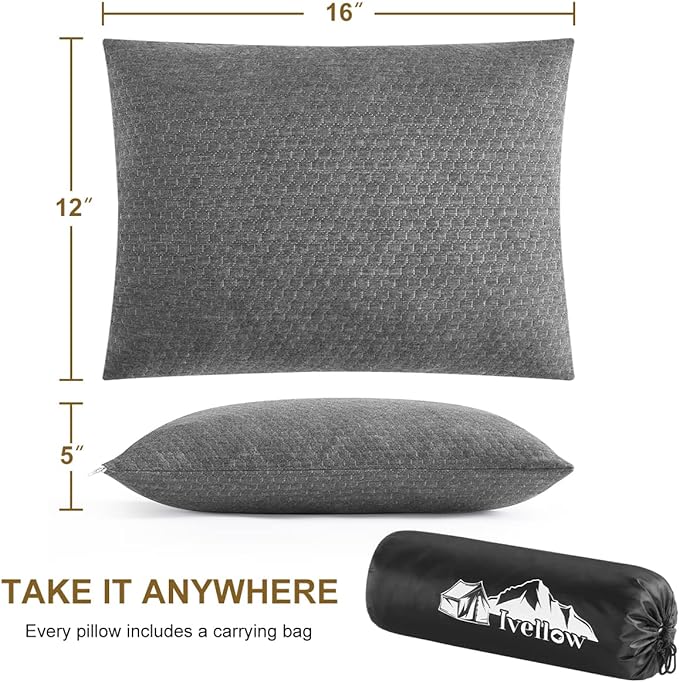 Ivellow Memory Foam Travel Pillow Compressible Camping Pillow for Sleeping Shredded Memory Foam Pillow Compact Firm Supportive Travel Pillow for Adults Kids Outdoor Backpacking Hiking Essential Gear-S