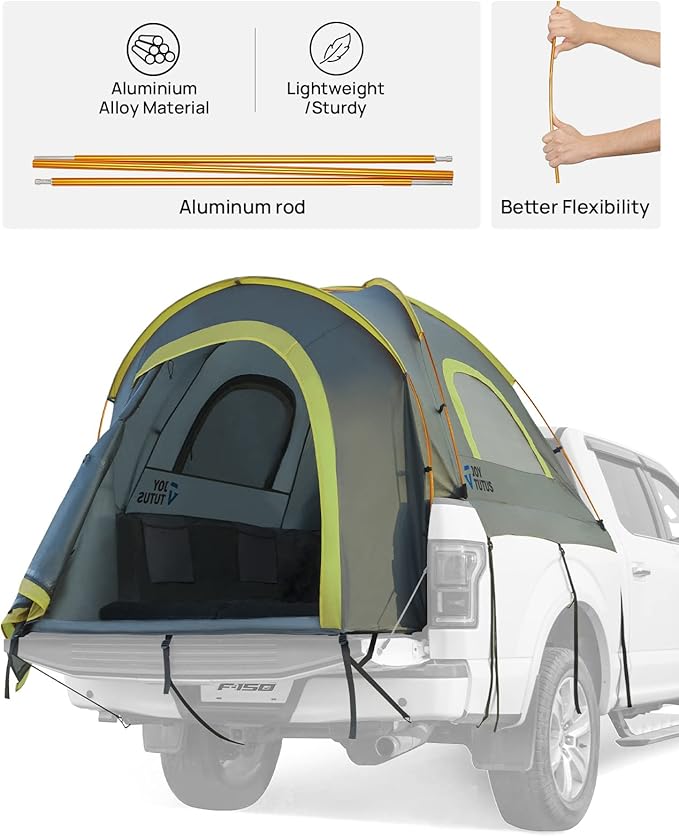 - 【Compatibility】: The truck bed tent will fit for pickup truck with 5.5-5.8 ft truck bed. Compatible with F150, Ram, Silverado, Tundra, Sierra, Titan etc. Perfect with Joytutus truck air mattress for comfortable car camping, fishing, hiking, etc