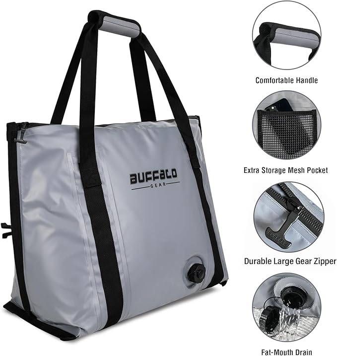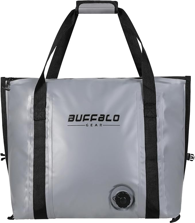 Buffalo Gear Insulated Fish Cooler - 27.5QT 58QT Waterproof Flat Bottom Bag, Leakproof and Fishing Kill Bag