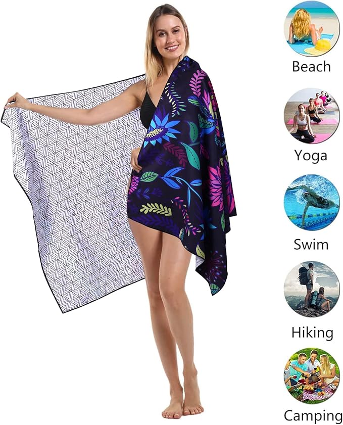 - 【Two Size Options】:Large size : 60"x32"- if you need something more compact. Ex-Large size : 72"x36" - easily cover you and your companion, letting you relax on a beach chair and sunbathe, enjoy the scenery of the sea. Soft to the touch and let your skin contact with it at ease. Enjoy leisurely time!