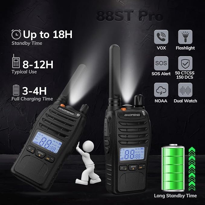 - Upgraded Version: BF-88ST Pro features VOX, dual watch, and other useful features for radio beginners. Program these walkie talkies long range through the keypad and enjoy the easy-to-use interface. FCC ID: 2AJGM-A88