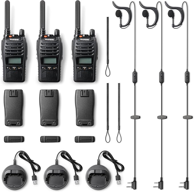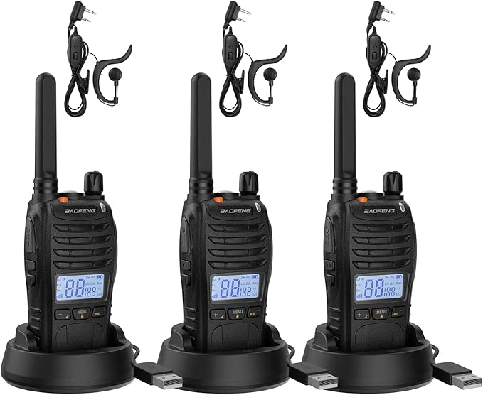 Baofeng BF-88ST Pro Walkie Talkies - 3 Pack, Long Range Radios Walkie Talkies for Kids and Adults, Upgraded from BF-88ST NOAA VOX Dual Watch, with Desktop Charger and Earpieces (Black)
