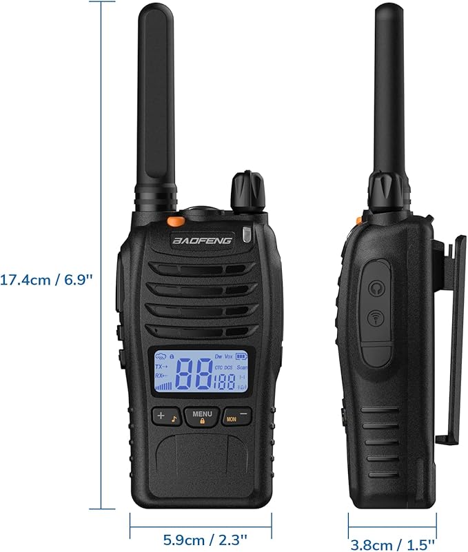 - Size for Outdoor Use: At 0.5 pounds each and only a 2.3 x 1.5 x 6.9 size, this Baofeng walkie talkies is a portable unit. With light weight and slim design, anyone can get a comfortable grip on and carry around, even for kids.