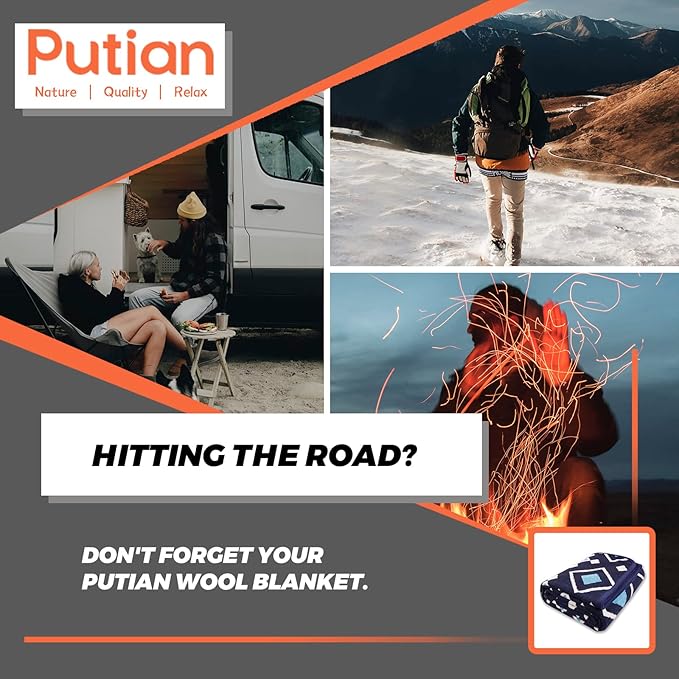 - 100%ODOR FREE - PuTian large wool blanket will keep you and friends cozy while camping, at a tailgate, football game, or just as an emergency blanket. Even the tallest person can use this lightweight camping blanket comfortably