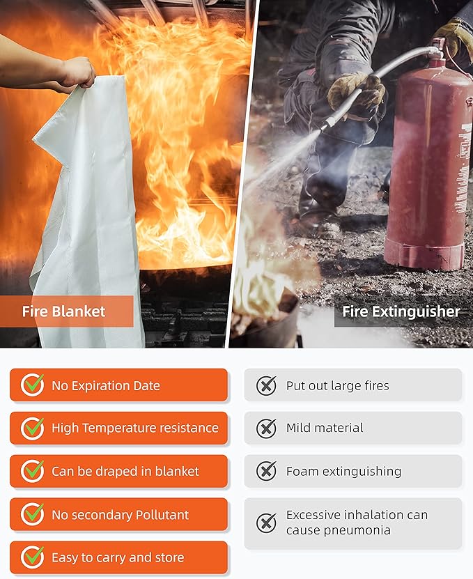 - Easy-to-Use Fire Suppression Blanket: Handle a fire incident easily with our fire retardant blanket; all you have to do is get the blanket out of the package, unfold it, and cover the fire spot until the fire is over