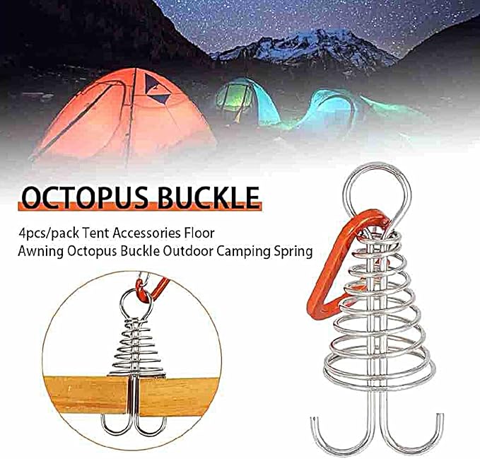 10PCS Deck Anchor Pegs, Windproof Aluminium Alloy Octopus Tent Stakes with Spring Buckle, Portable Wind Rope Anchor, Camping Tent Nail