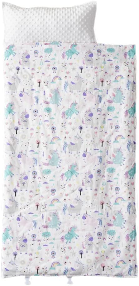 Bunnikins & Clover Toddler Nap Mat with Removable Pillow, Nap Mats for Preschool, Easy Clean Toddler Nap Pad for Kindergarten, Kids Sleeping Bag for Travel Camping
