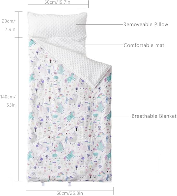 - ALL PURPOSE NAP MATS: The nap mat blanket simplifies life for both parents and kids. This set consists of a built-in sleeping pad, a plush blanket, and a pillow that can be removed when machine washing the mat.