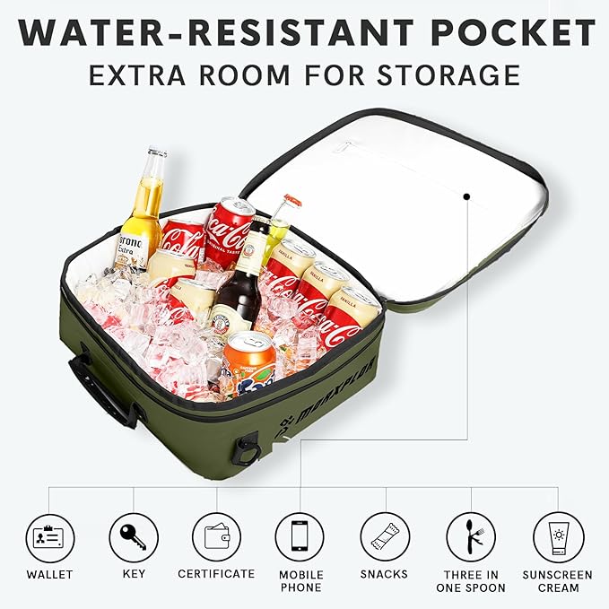 - Cooler Bag for Paddleboard with Waterproof Material 500D PVC:All seams and handles are all electrowelded together to ensure structure strong to make sure this deck paddleboard cooler bag have longer service time.The truly waterproof material will keep your bag under low temperature for longer time than common sewing paddle board cooler.