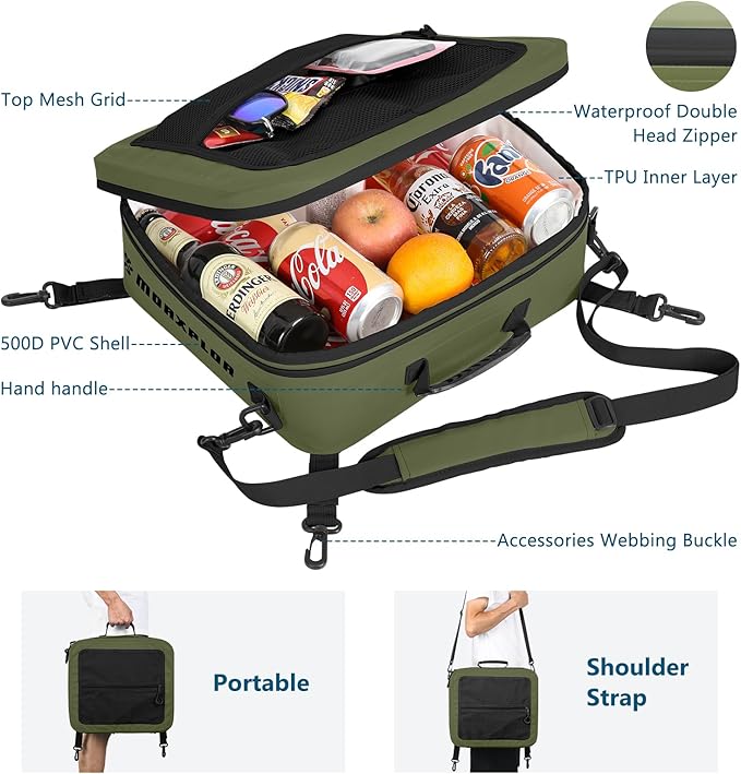 - Ideal Paddleboard Accessories Cooler and Deck Bag:MORXPLOR paddleboard deck cooler bag easily fit 12 cans or equivalent amount of food for your day-long excursion.Size:14.6”x13”x4.7”.