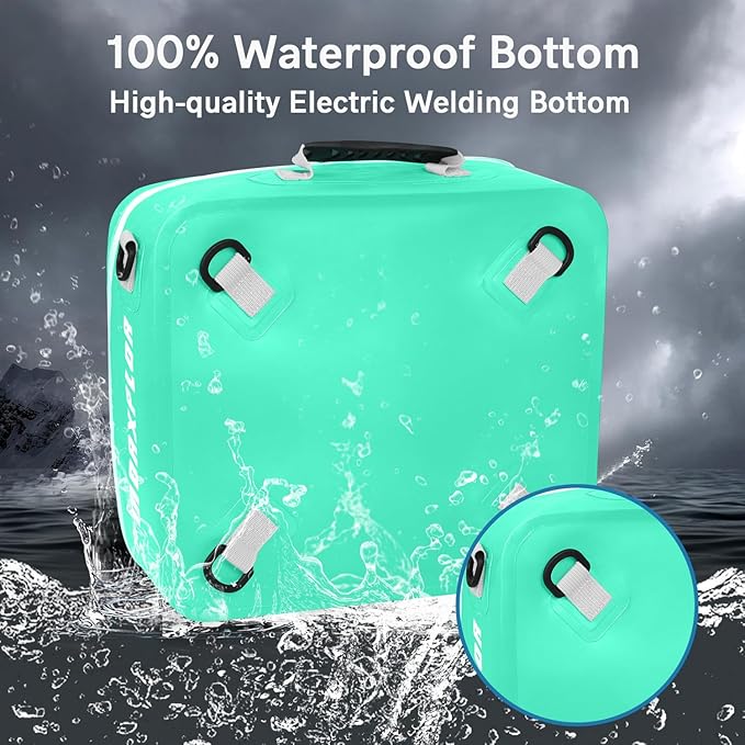 - Cooler Bag for Paddleboard with Waterproof Material 500D PVC:All seams and handles are all electrowelded together to ensure structure strong to make sure this deck paddleboard cooler bag have longer service time.The truly waterproof material will keep your bag under low temperature for longer time than common sewing paddle board cooler.
