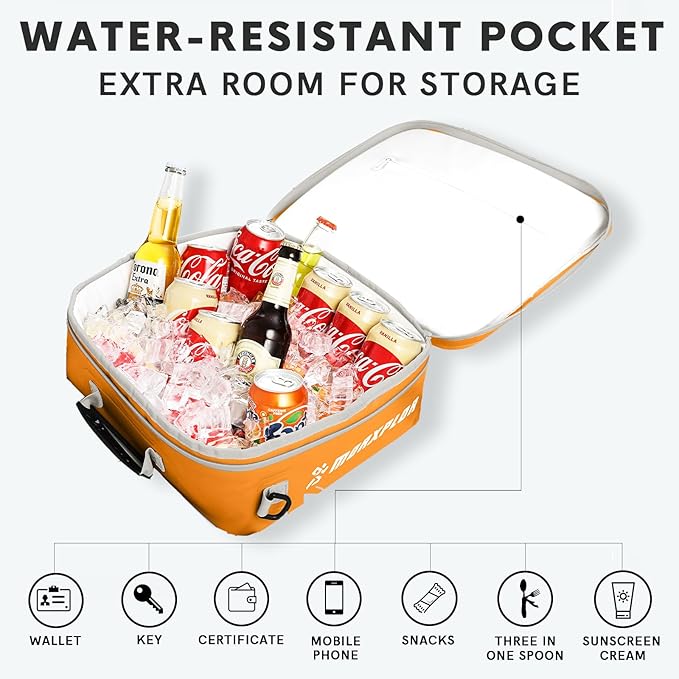 - Cooler Bag for Paddleboard with Waterproof Material 500D PVC:All seams and handles are all electrowelded together to ensure structure strong to make sure this deck paddleboard cooler bag have longer service time.The truly waterproof material will keep your bag under low temperature for longer time than common sewing paddle board cooler.
