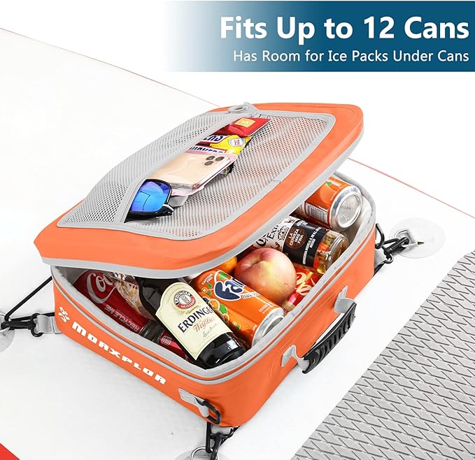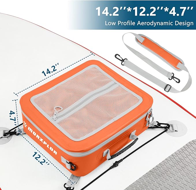 - Ideal Paddleboard Accessories Cooler and Deck Bag:MORXPLOR paddleboard deck cooler bag easily fit 12 cans or equivalent amount of food for your day-long excursion.Size:14.6”x13”x4.7”.