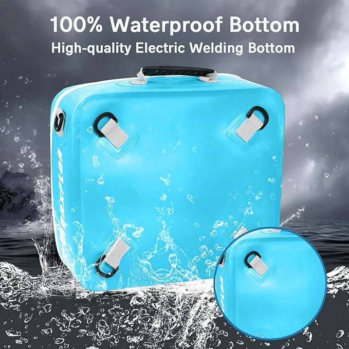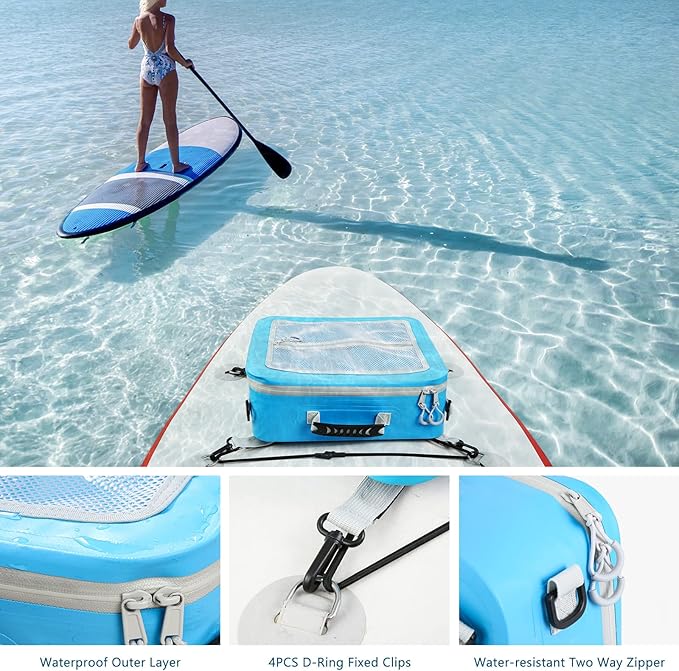- Cooler Bag for Paddleboard with Waterproof Material 500D PVC:All seams and handles are all electrowelded together to ensure structure strong to make sure this deck paddleboard cooler bag have longer service time.The truly waterproof material will keep your bag under low temperature for longer time than common sewing paddle board cooler.