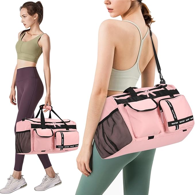 MAXTOP Gym Bag for Women Men Travel Duffle Bag Large Capacity Carry On Weekender Overnight Bag With Shoe Compartment Gym Tote Dry Wet Separation Duffel Bag for Travel