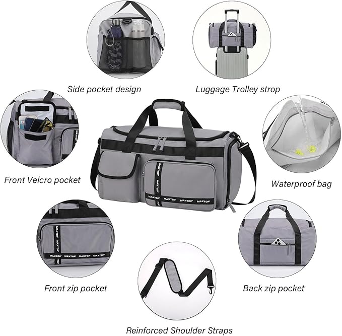 - Multi-Purpose Bags & Perfect Present:MAXTOP travel duffel bag can be used as a business travel bag, short journey bag, weekend overnight bag, toiletry bag, camping bag, sports duffle dag, gym tote bag, carry-on luggage, etc. Widely used, it is a perfect gift for your wife, friends and parents.