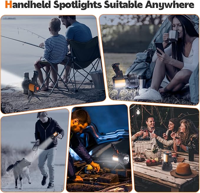 - Durable Material: The handheld spotlight shell made from military level ABS and aluminium alloy materials, it can prefect protect the spotlight from drops and bumps while in use.