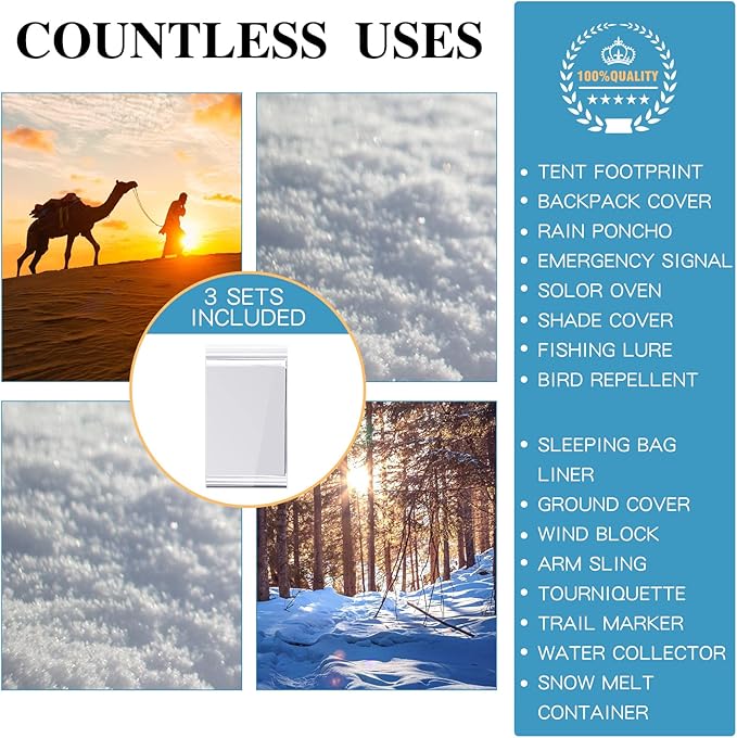 - Emergency Use: these emergency blankets are ideal for emergencies that require warmth or protection from harsh weather conditions, helping to prevent hypothermia and shock by retaining up to 90 percent of the user's body temperature; They can also be applied with emergency shelters, emergency sleeping bags, emergency camping or other lifesaving gear for extra safety