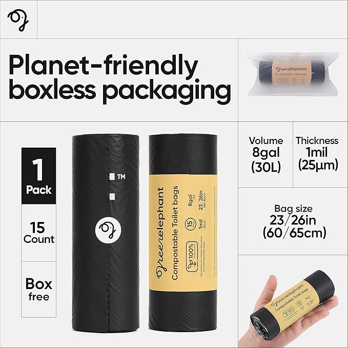 - GO ON THE GO – Make an easy-to-clean camping bathroom setup with Green Elephant’s potty bags for portable toilet, whether you’re camping, on long car trips or tailgating