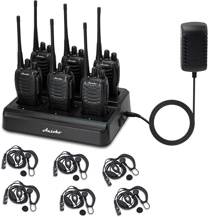 Walkie Talkies for Adults Long Range Rechargeable 2-Way Radio Walkie Talkie with 6-Bank Gang Charger and Spare Batteries (6 Pack)