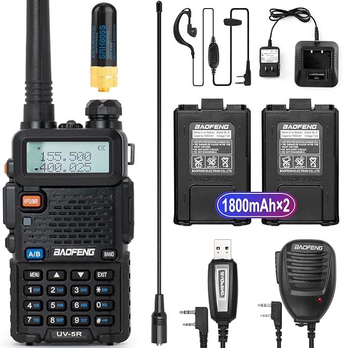 BaoFeng UV-5R Handheld Ham Radio with Extra 1800mAh Battery and Greaval GV-771 High Gain Antenna, Dual Band Two Way Radio includes Full Kit (Black)