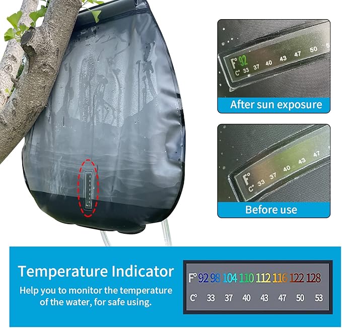 - When the water temperature is suitable, you can just simply hang the shower bag, turn on the shower head and enjoy your outdoor shower!