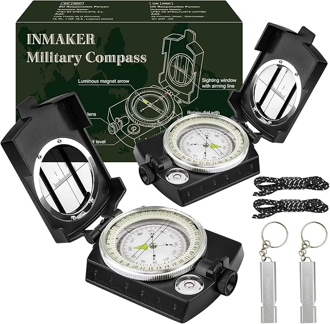 INMAKER Compass, Compass Hiking with Survival Whistle, Luminous Compass Gift for Kids, Apply to Outdoor Survival, Camping and Navigation