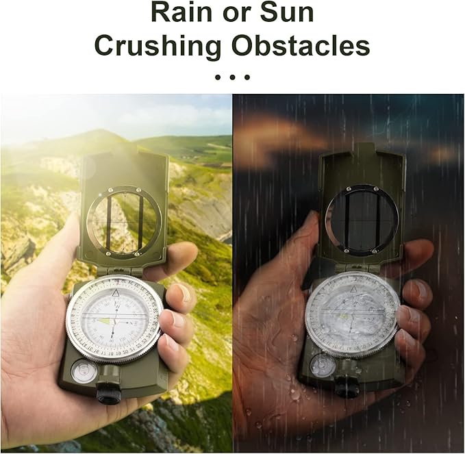 - The Awesome Gift-Professional military compass is stable and fearless in harsh environments, suitable for driving, boating, camping, hiking, exploring, hunting and so on outdoor activities, a great gift for kids, scouts, backpackers and women!