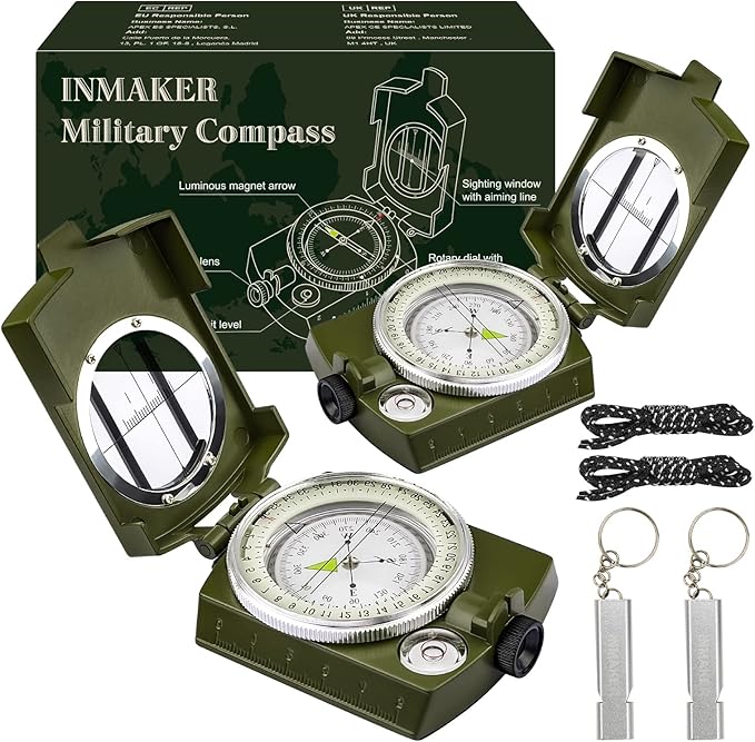INMAKER Compass, Compass Hiking with Survival Whistle, Luminous Compass Gift for Kids, Apply to Outdoor Survival, Camping and Navigation