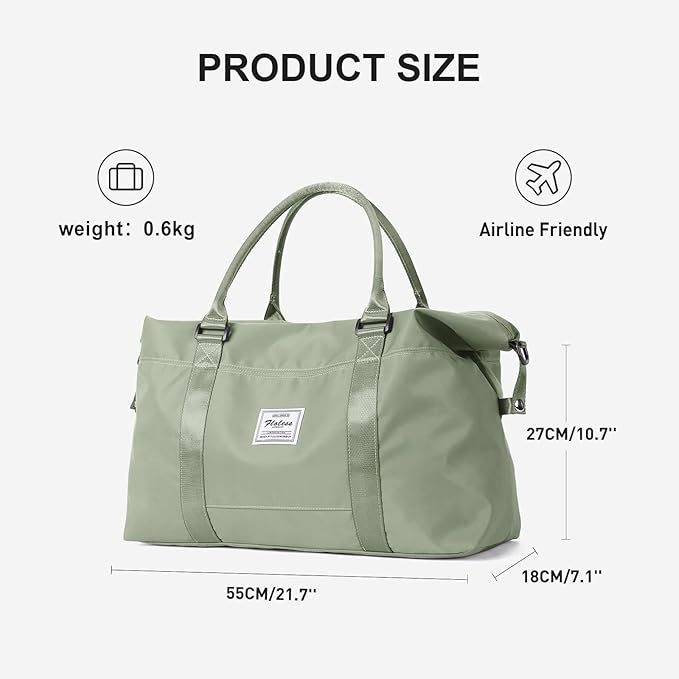 Sport Travel Duffle Bag Large Gym Tote Bag for Women, Weekender Carry on Bags for Airplane, Ladies Beach Overnight Bag Waterproof Luggage Bags with Wet Pocket Light Green