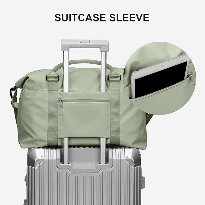 - ✅【 Extra points Weekend Bag 】 ①The sleeve on the back of the duffle has an additional adhesion belt to keep the bag stayed on the suitcase tightly. ②The duffel bag made of high quality tear and water resistant fabric,you don't worry about your items from getting a wet.③Double zipper, smooth and wear-resistant. ④Adjustable shoulder straps, freely adjust the tightness of the backpack.