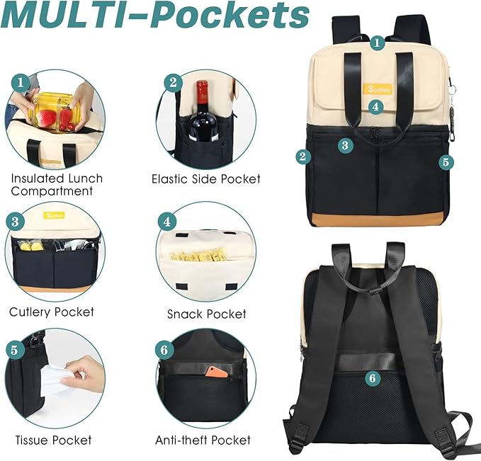 - 👜Stylish Appearance and Ideal Gift:Our Convertible insulated backpack can use it as a chic tote, a hands-free backpack, making it super versatile! Arrive in style—back trolley sleeve for easily sliding over your luggage/suitcase handles, dual padded shoulder straps provide optimum comfort. With this fashionable back pack cooler, you will get a lot of compliments. Moreover, It's a great gift idea for women, perfect for lunch, picnic, work, travel, hiking, biking, park, beach, zoo and Disney.