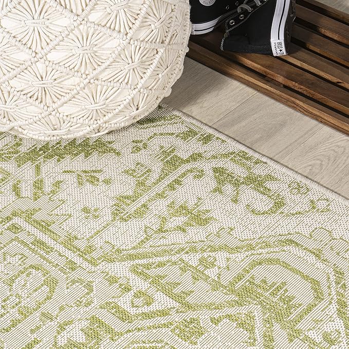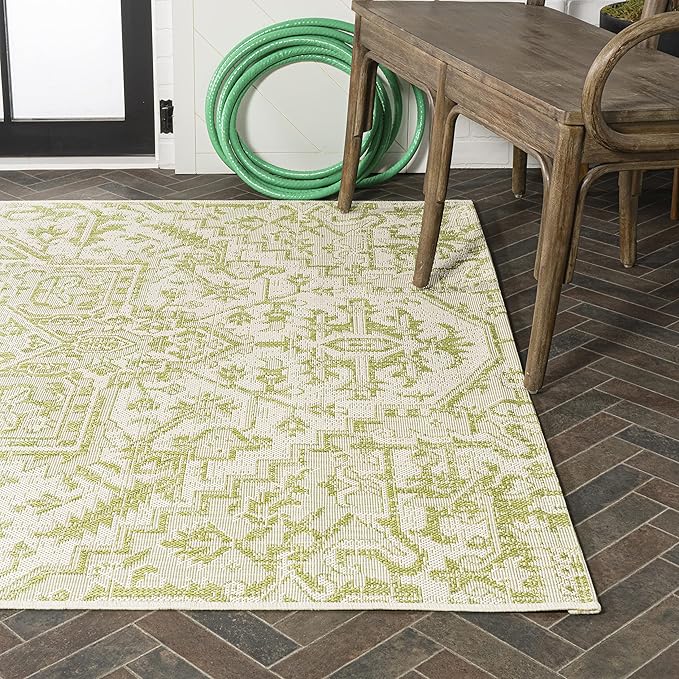 - INDOOR/OUTDOOR DURABILITY: Give your patio, deck or porch an instant makeover with an indoor/outdoor rug; Low-pile synthetic rug fibers are durable for high-traffic spaces like the kitchen, mud room or entry; Perfect for families with kids
