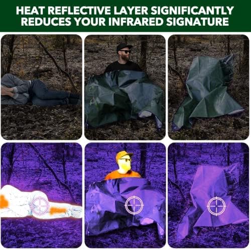 - 【Outdoor Essentials】One side has the functions of rainproof, fireproof, dustproof and soil, and the other side can be used to reflect heat, form a radiation barrier or send out a distress signal. The close-to-natural color and insulation can be used to deceive animals, and good shielding can reduce radiation and signal interference.
