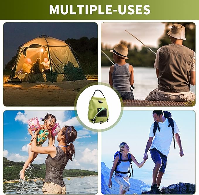 • WIDE RANGE OF USES - This camping showers is suitable for outdoor activities such as camping, backpacking, hiking, fishing or hunting, our portable shower bag is one of the indispensable outdoor equipment accessories for you and your family.It is also the best gift for Father's Day and the perfect camping accessory for men your husband and your children.