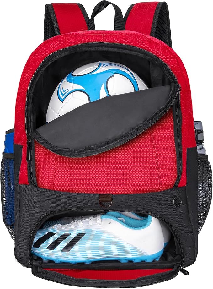 - 【Separate Compartment】Our ball backpack has two separate Cleat design to keep gears orgnaized, the front ball compartments is perfect for holding a soccer ball or basketball, volleyball, football. The bottom compartment set a vented hole that can keep stink out, perfect for carrying sneakers and sports shoes