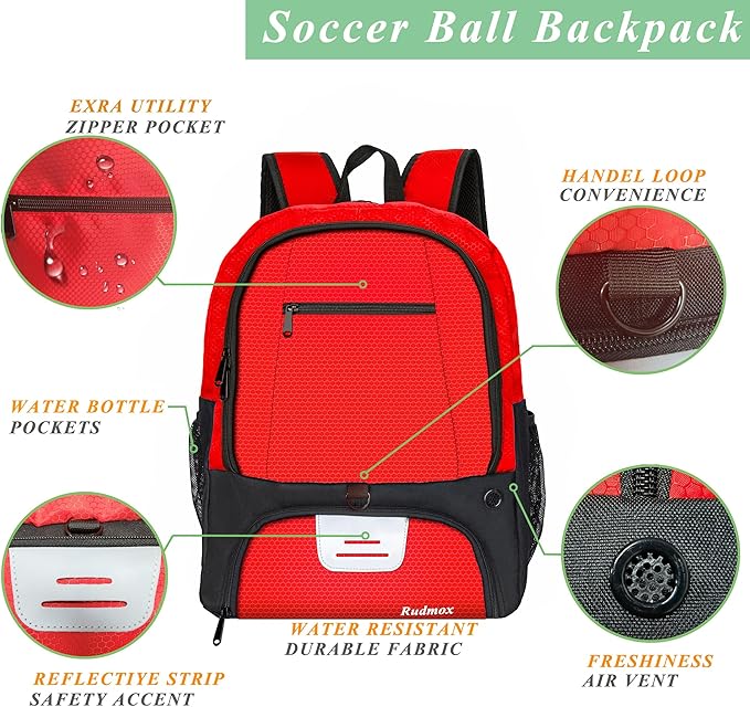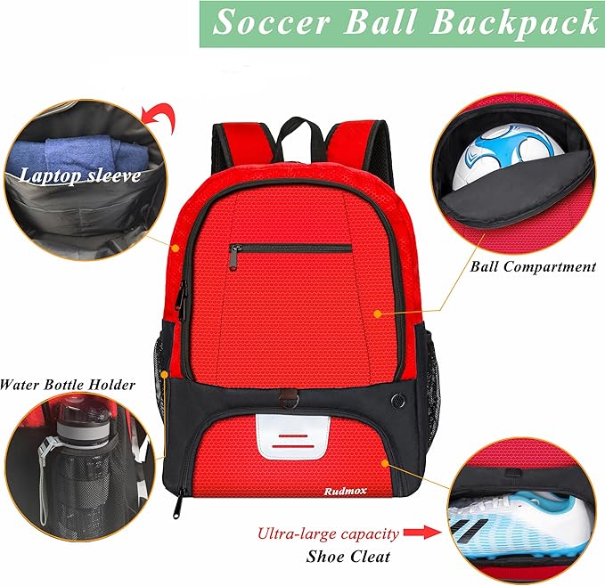 - 【Versatile Pockets】The soccer backpack inside has a sleeve, it can hold 13-17inch laptops or sports cloths, as well as has extra two pockets, allow you to keep pens, notebook, keys, wallets or other belongings