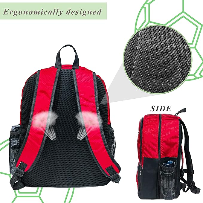 - 【Comfortable Carrying】The sandwich mesh material on the back and straps of this soccer bag provides breathability and heat dissipation, making it comfortable to carry even during long periods of use