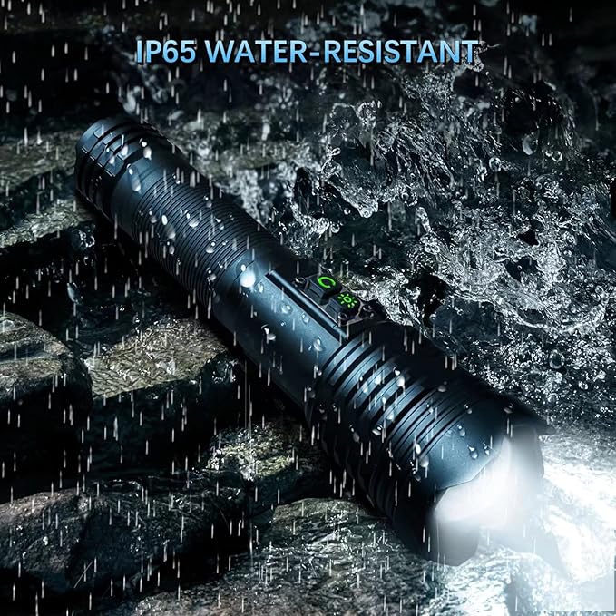 - 【WATERPROOF & HIGH-QUALITY MATERIALS】IPX5 waterproof & Shockproof, impact resistance. Perfect for using in the rainning, snowing or other emergency situation. This super bright flashlight is made of high-quality aviation aluminum for excellent heat dissipation.