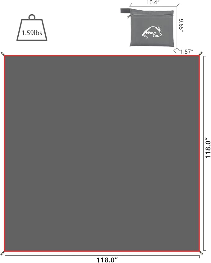 Wind Tour Portable Multifunctional Outdoor Camping Tarp Groundsheet Footprint Lightweight Floor and Ground Tarps for Camping Hiking with Carry Bag (118" x 118")