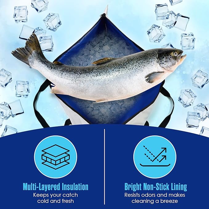 - KEEP YOUR CATCH FRESH - Protect your newly caught fish from bugs, heat, and dry air. Simply add ice to the bag and zip up. At the end of the day, your fish will be as fresh as the moment you caught it.