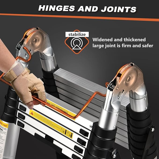 - Multi-Purpose A-Frame Ladder, Adjustable from 2.8ft to 12.5ft. The added two new triangle stabilizers on the upgraded telescopic ladder can reduce the shaking. The Extension ladder can be used as an A-Frame ladder 6.2ft+6.2ft or 12.5 FT straight ladder for the roof, and attic stairs.
