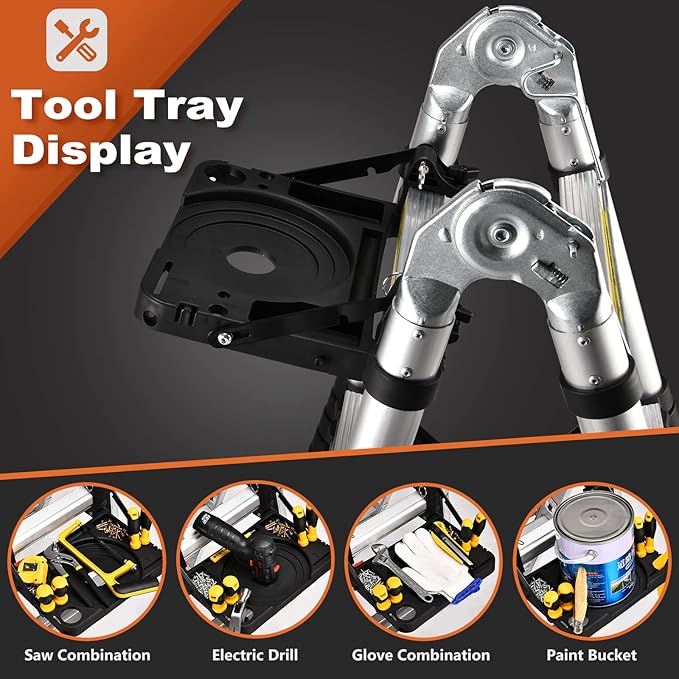 - Multi-Purpose Aluminum Telescoping Ladder, with a stong hinge lock mechanism, the telescoping ladder can act as an A-frame ladder, straight extension ladder, stairway step ladder, and as well as stand support of scaffold.