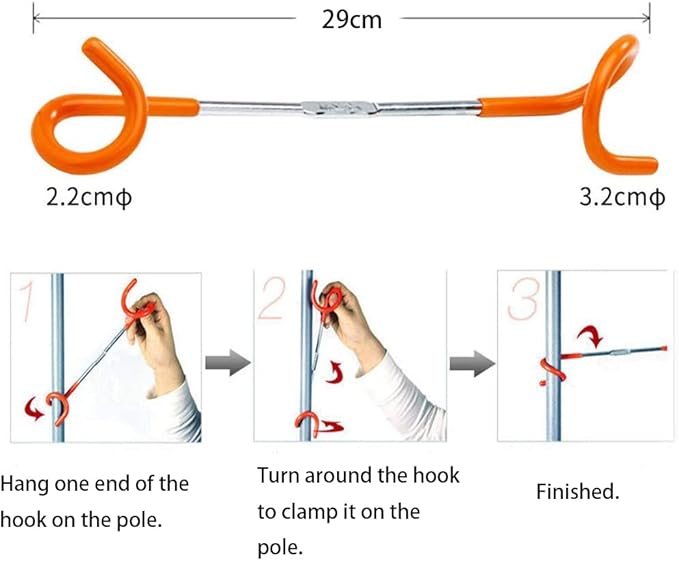 - This camping hook is suitable for less than 32 mm and more than 22 mm diameter fixtures