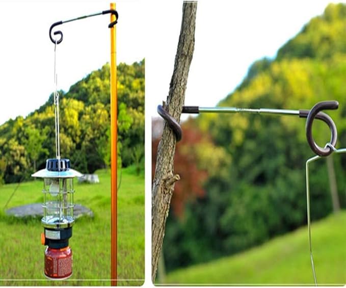 - The tent lantern hook is made of bending-resistant steel with with non-slip rubber on each end,to ensure firmly stay on the suitable poles or branches, and will not slip down.