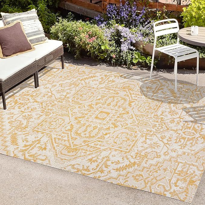 JONATHAN Y SMB105H-5 Estrella Bohemian Medallion Textured Weave Indoor Outdoor Area-Rug, Coastal Traditional Easy-Cleaning,Bedroom,Kitchen,Backyard,Patio,Non Shedding, 5 X 8, Cream/Yellow