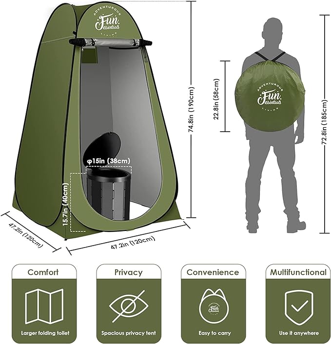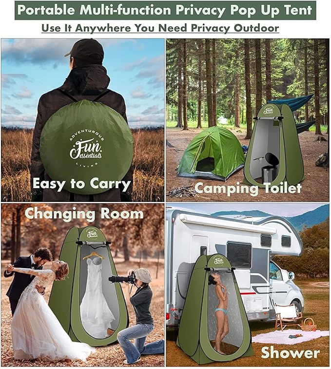 - ✅ Most Privacy and Sanitation For Your Next Adventures-Full Size Privacy Pop up Tent. The FUN ESSENTIALS 6 feet 2 inches instant privacy tent offers you instant privacy for camping, outdoor shower, changing cloth, bathroom and potty use! Easy installation with instructions.
