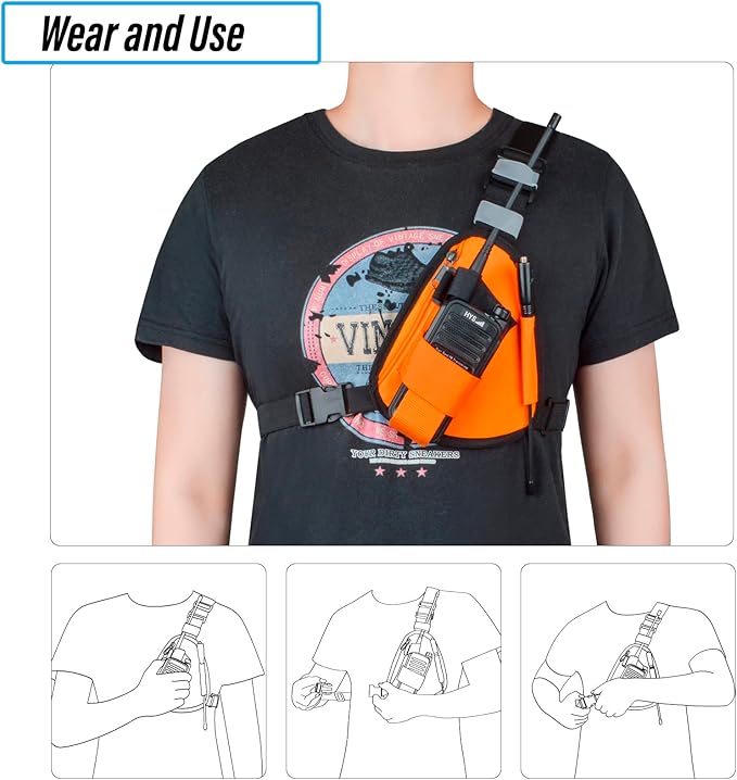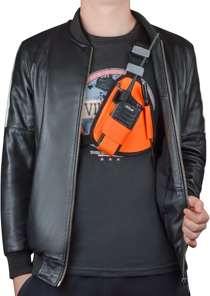 Universal Radio Chest Pack, Walkie-Talkie Nylon Holder, Holster Case Pouch Front Pack Accessories for Baofeng UV5R Kenwood Yaesu Motorola Cobra Retevis Two Way Radio (Orange)