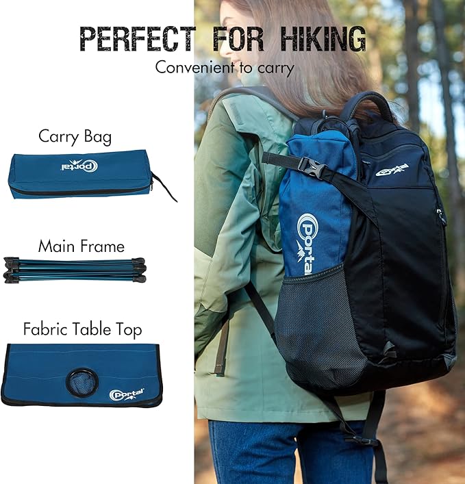 PORTAL Folding Camping Table, Ultralight Compact Aluminum Mesh Table with Carrying Bag, Small Beach Table Foldable Portable for Sand, Outdoor, Picnic, Camp, Boat, Travel, Blue